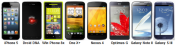 Each of eight phones below have significant advantages over the phones in the above chart. Our finalists are Apple’s iPhone 5, HTC’s Droid DNA, HTC’s Windows Phone 8X, HTC’s One X+, LG’s Nexus 4, LG’s Optimus G, Samsung’s Galaxy Note 2 and the Samsung Galaxy S III.